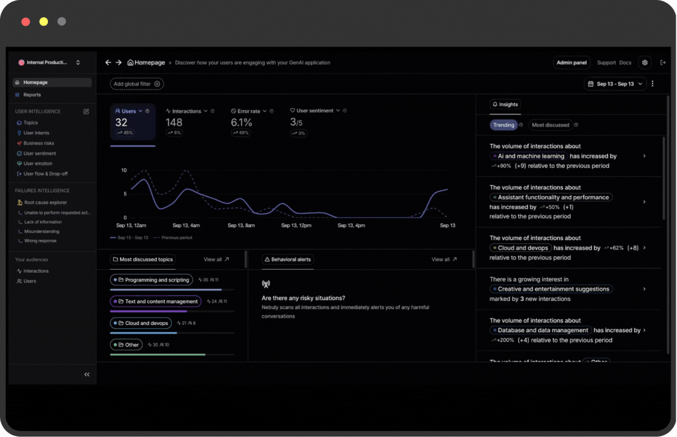 This option can be enabled by your team when integrating Nebuly, giving you full control over what data is visible while maintaining complete insight into user behavior.