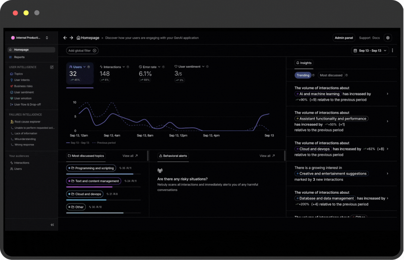 This option can be enabled by your team when integrating Nebuly, giving you full control over what data is visible while maintaining complete insight into user behavior.